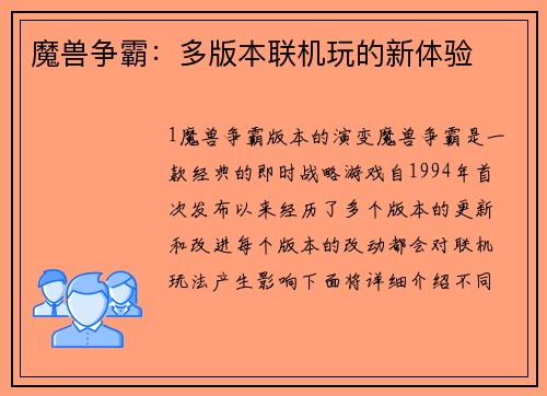 一、魔兽争霸1.31的分辨率调整 魔兽争霸1.31是一款经典的即时战略游戏,拥有众多玩家。在游戏中,调整分辨率可以提升游戏画面的清晰度和流畅度,为玩家带来更好的游戏体验。本文将从以下几个方面详细阐述如何调整魔兽争霸1.31的分辨率。 二、分辨率的概念和影响 分辨率是指屏幕上像素点的数量,通常用宽度像...
